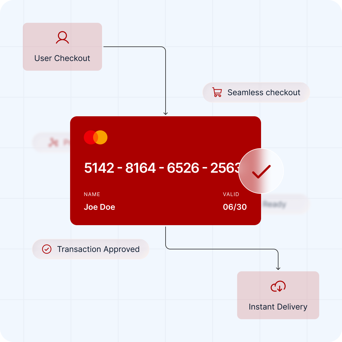 A customer initiates a purchase and payment is submitted through your existing payment gateway.