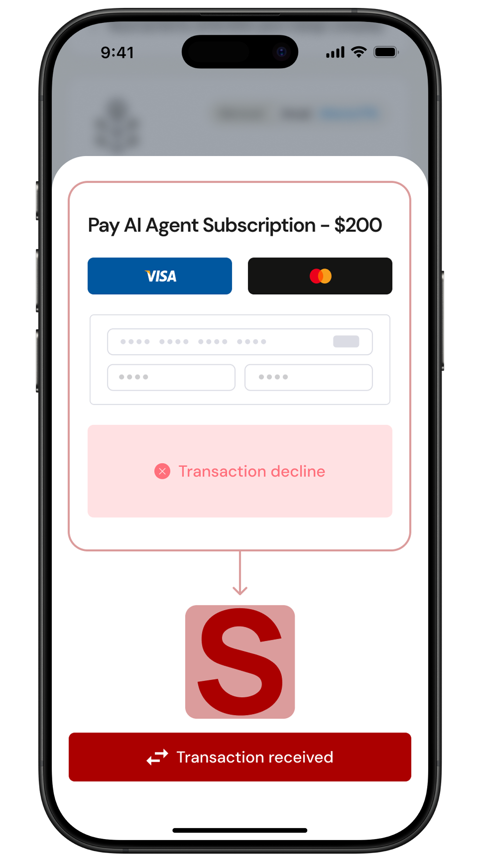 If an authorization fails, payment data is securely shared with Submend so the decline can be evaluated for potential recovery.